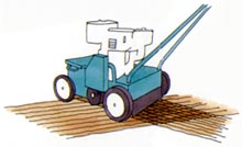 knife blades. As the Lawn Seeder moves forward, the neoprene flap smoothes the soil to